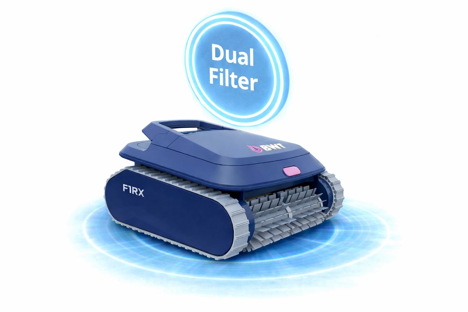 BWT F1 RX je navržen pro důkladné, rychlé a energeticky úsporné čištění bazénů různých tvarů i povrchů. Díky chytré navigaci a gyroskopu dokáže systematicky vyčistit dno, stěny i vodní linku, takže voda i povrchy bazénu zůstávají dlouhodobě v perfektní kondici.
