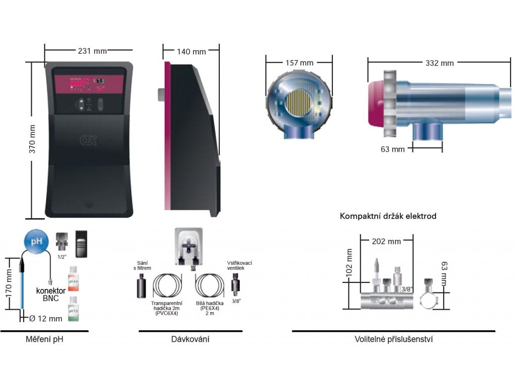 - součástí je peristaltické dávkovací čerpadlo a elektroda pH s kalibrační sadou.