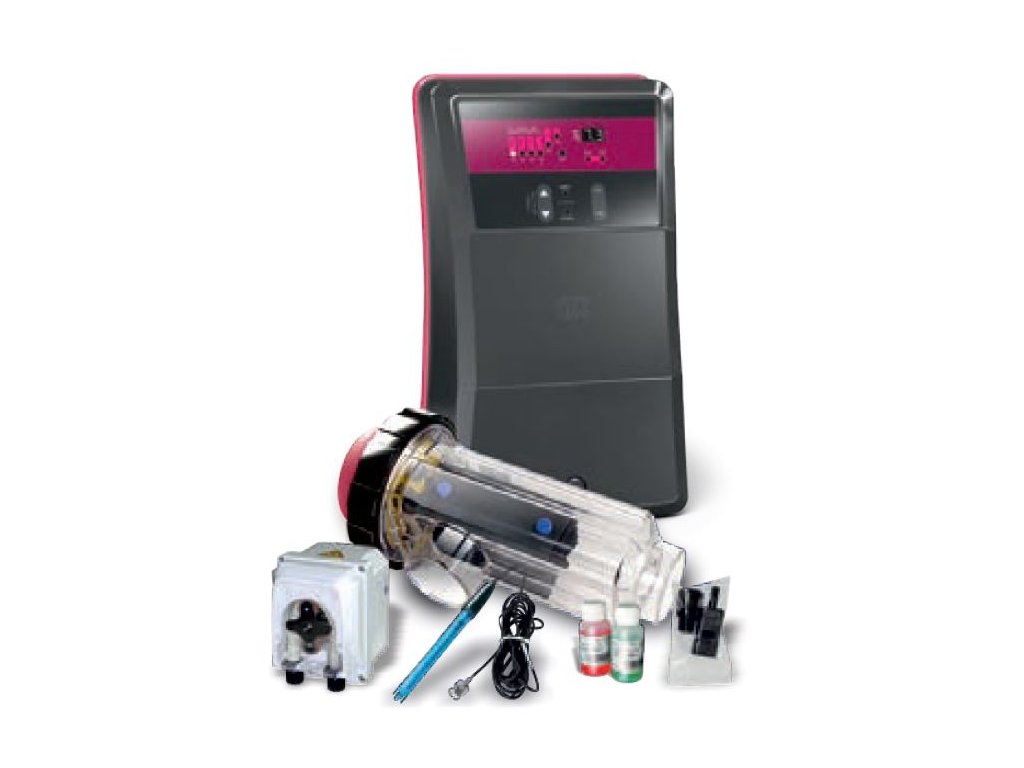 - Profesionální systém elektrolýzy soli se samočištěním elektrod prostřednictvím změny polarity.