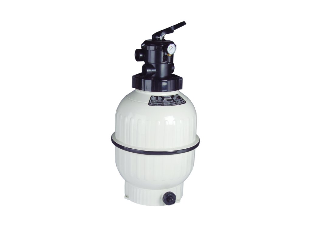 Filtrační nádoba s vysokou pevností a dlouhou životností. Horní a dolní část filtru polyfúzně svařena, čímž je zaručena nejvyšší tlaková odolnost. Vybaven 6-ti cestným ovládacím ventilem, manometrem, výpustí vody a písku. Maximální doporučená filtrační rychlost 50 m³/h/m². Maximální tlak 2,5 kg/cm². Záruka na nádobu filtru 2 + 8 let -