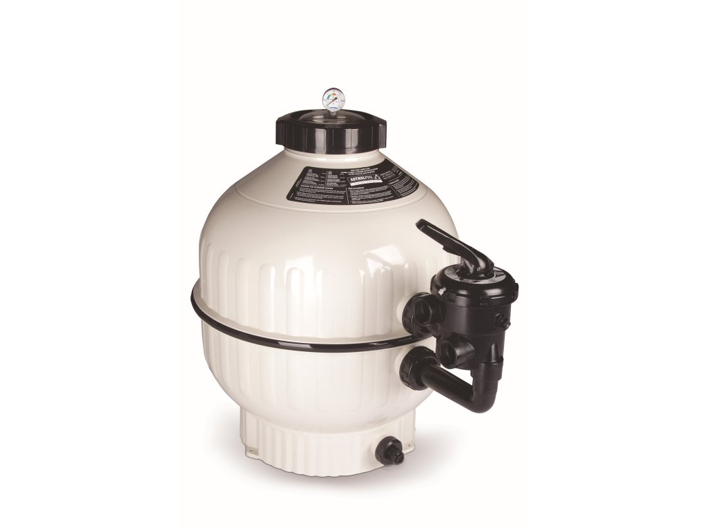 Filtrační nádoba s vysokou pevností a dlouhou životností. Horní a dolní část filtru polyfúzně svařena, čímž je zaručena nejvyšší tlaková odolnost. Vybaven 6-ti cestným ovládacím ventilem, manometrem, výpustí vody a písku. Maximální doporučená filtrační rychlost 50 m³/h/m². Maximální tlak 2,5 kg/cm². Záruka na nádobu filtru 2 + 8 let -