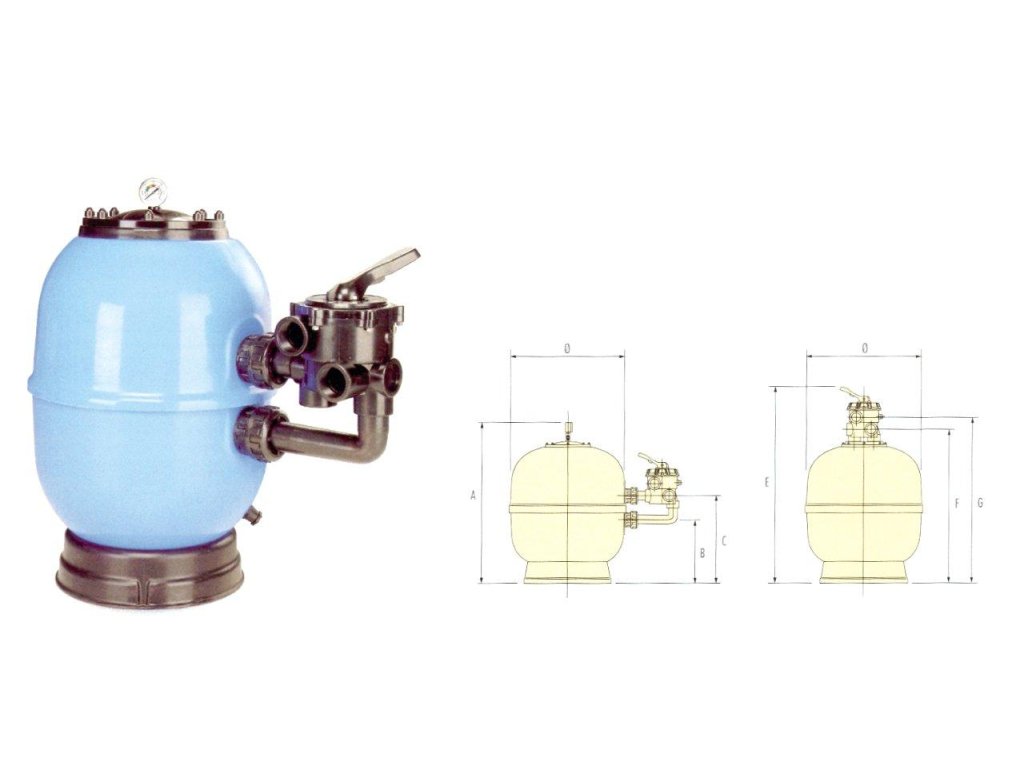 Filtrační nádoba Lisboa 500 mm, průtok 9 m3/h, boční ventil