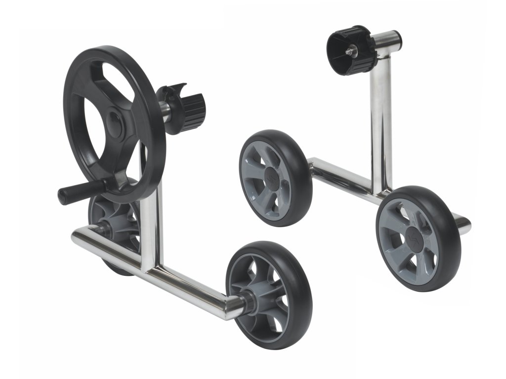 Kompletní navijákové sady obsahují: nerezové stojny, teleskopickou tyč, sadu pásků a příchytek pro upevnění solární plachty, pojistku proti rozmotání. Teleskopická tyč je vyrobena z eloxovaného hliníku a má po celé délce drážku pro jezdce k upevnění plachty. Navíjecí zařízení jsou vyráběna firmou Vágner a to v několika modifikacích, pevné, tj. pro pevnou instalaci pomocí hmoždinek, které jsou součástí, přenosné a mobilní (s kolečky). Tyto stojny jsou vyrobeny z leštěné nerezové oceli a plast. částí. Součástí dodávky je kompletní sada s příslušnými komponenty pro zajištění pevného napojení plachty, tkalounu a navíjecí tyče. Zařízení má také pojistku proti rozmotání navinuté krycí plachty.