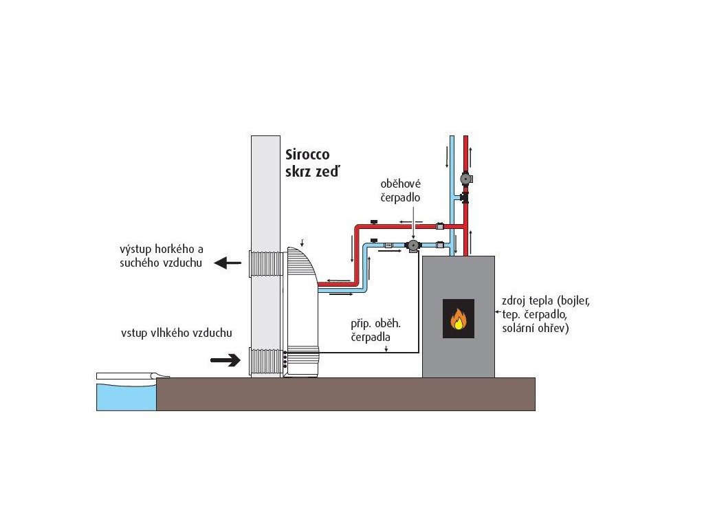 Odvlhčovač Sirocco Skrz Zeď 80, 3kW el. ohřev, 230V