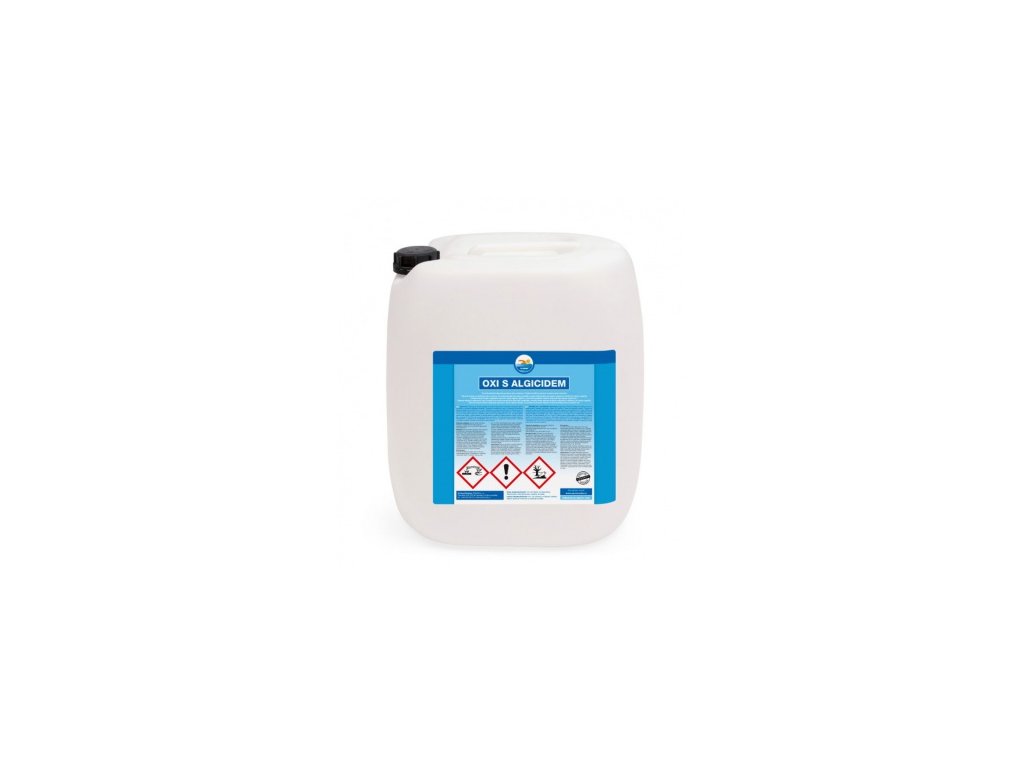Tekutý dezinfekční prostředek na bázi aktivního kyslíku s algicidem.