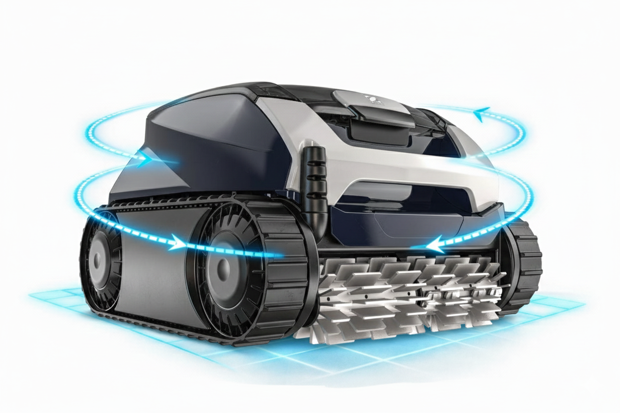 Patentované cyklónové sání vytváří silné proudění, které pomáhá oddělovat nečistoty od vody a účinně je zachytit ve filtru. Díky tomu si robot poradí i s jemnějšími částicemi a přispívá k čistému a průzračnému vzhledu vody.