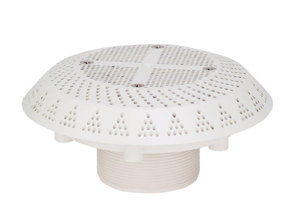 Vyrobeno z bílého plastu ABS, průměr mřížky 162 mm s kapacitou průtoku 35 m3/h, napojení lepením 63 mm nebo závitem 2 1/2“ ex, balení obsahuje příruby a dvě těsnění, doporučená instalace dvou kusů.