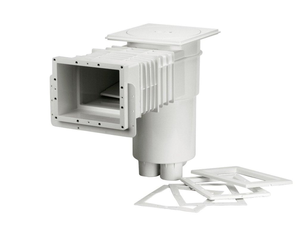 Skimmery VA do betonu nebo fólie jsou vyrobeny z bílého vstřikovaného ABS. Kulaté víko upevněné na čtvercový rám.