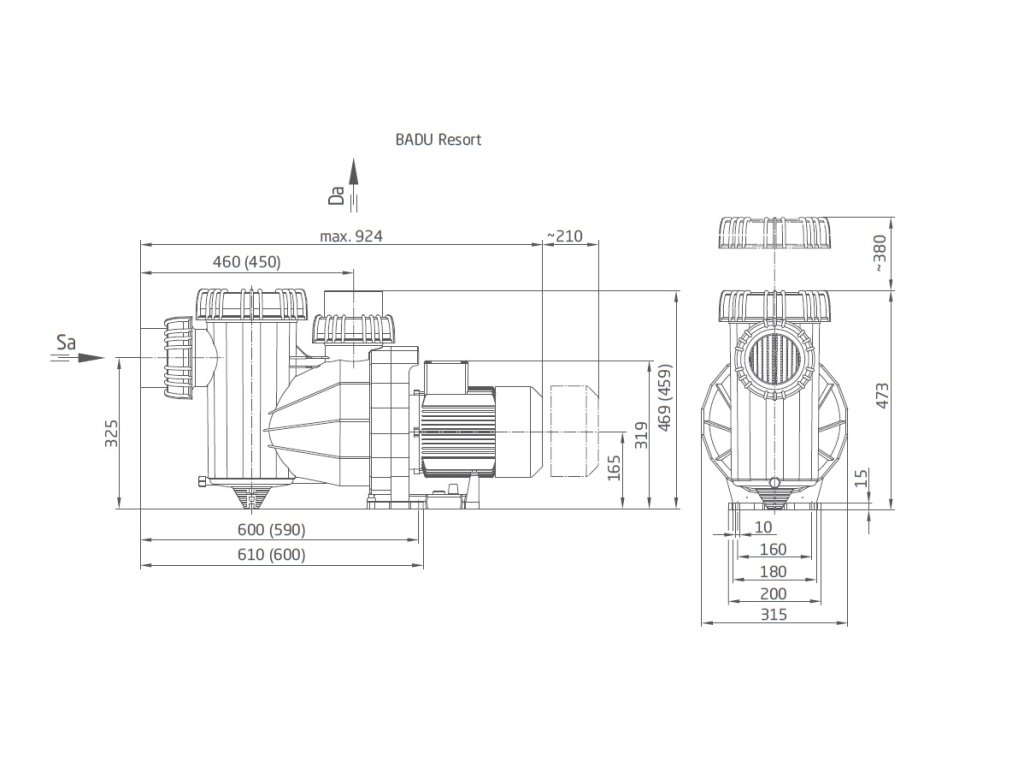 Samonasávací čerpadlo BADU RESORT je vhodné pro použití na poloveřejných a veřejných provozech jako např.: wellnes. Lze jej také použít jako čerpadlo pro vodní atrakce. Jako materiál je použitý plast s vyztužením ze skleněných vláken. Tato čerpadla mají průtok 30 -- 110 m3/h a výkonem 1,5 -- 5,5 kW