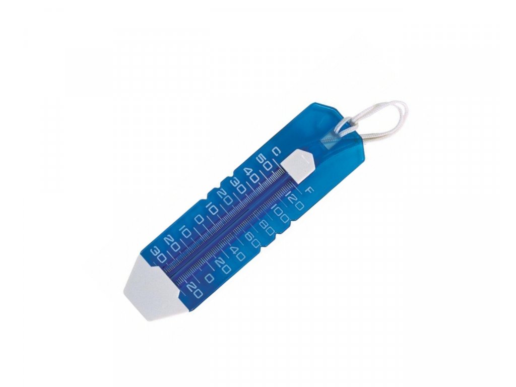 Slouží k měření teploty bazénové vody, doplněn provázkem k upevnění např. ke schůdkům