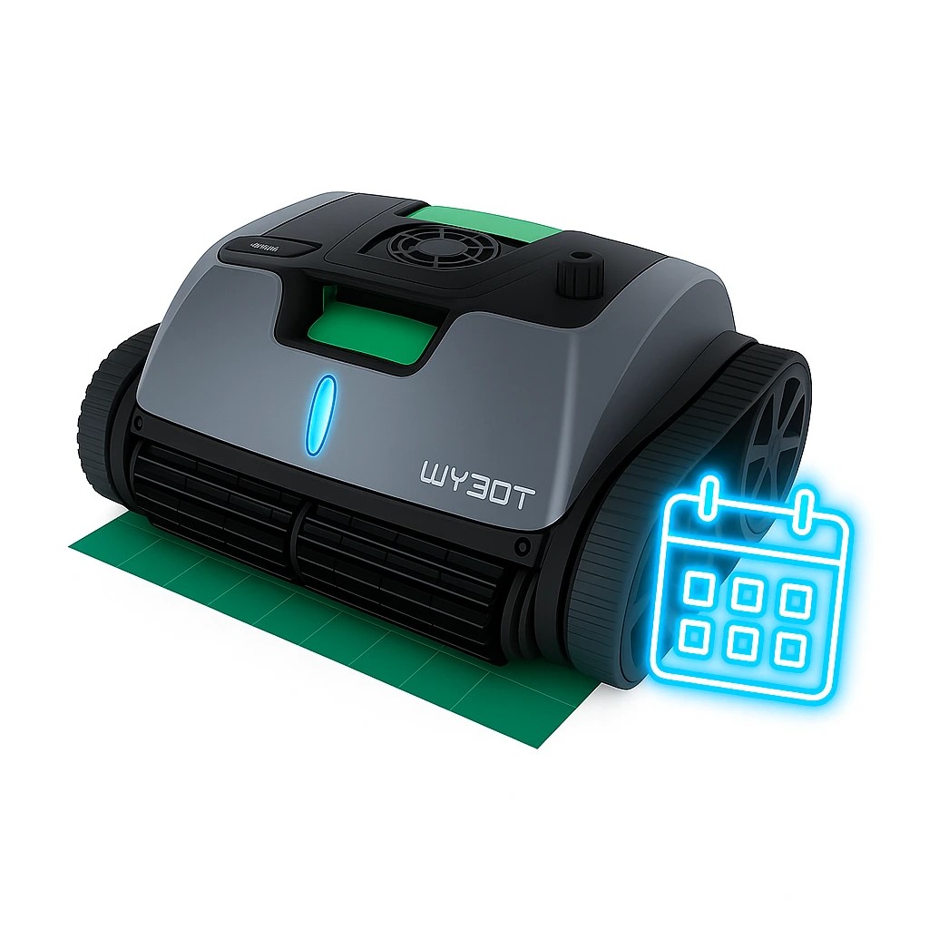 Robot ovládáš pohodlně přes chytrou aplikaci WYBOT. Vybereš si jeden ze čtyř režimů čištění, nastavíš cyklus, naplánuješ úklid na konkrétní dny a kdykoli zkontroluješ stav baterie. Aplikace navíc umožňuje zvolit dvě rozdílné čisticí strategie podle typu bazénu a míry znečištění.