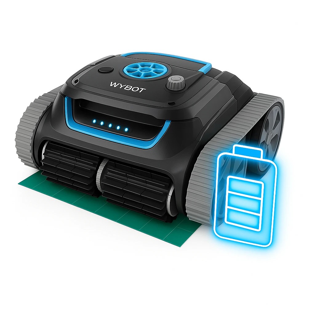 Díky baterii s kapacitou 6 400 mAh zvládne WYBOT S1 čistit až 3 hodiny v jednom cyklu, takže pokryje i velké bazény do 120 m². Plné nabití trvá pouze 2,5 hodiny, což usnadňuje i opakované čištění během dne, pokud je potřeba.