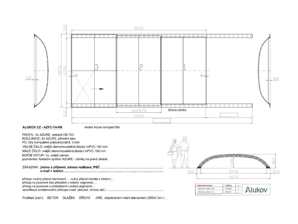 Zastřešení Alukov 7,62 x 3,75 m Azure Compact Flat RR