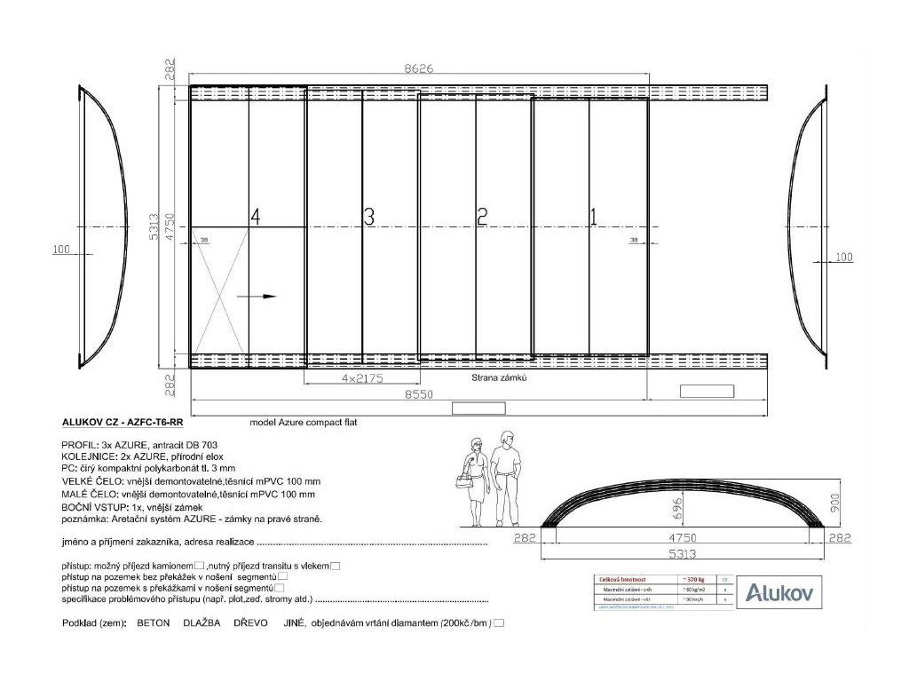 Zastřešení Alukov 8,55 x 4,50 m Azure Compact Flat RR