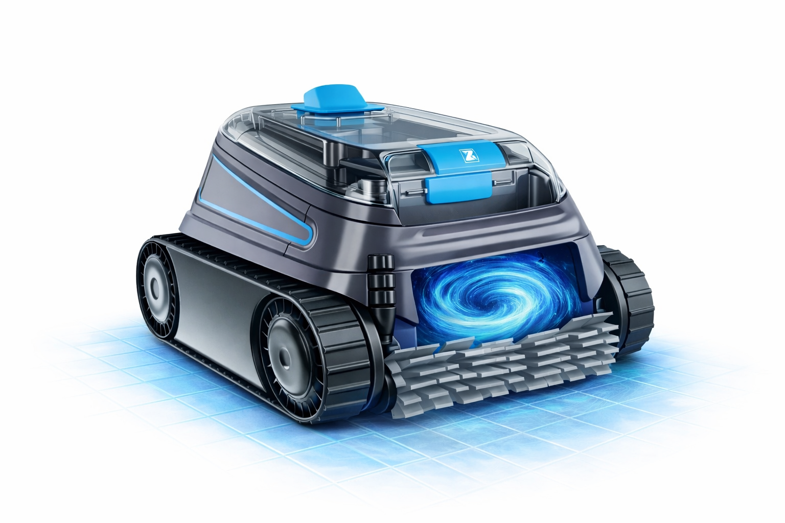 Patentované cyklónové sání vytváří silné proudění, které pomáhá zachytit nečistoty a podporuje stabilní čisticí výkon. Dva aktivní kartáče zároveň pomáhají mechanicky uvolnit usazeniny z povrchu bazénu, takže čištění je ještě důkladnější.