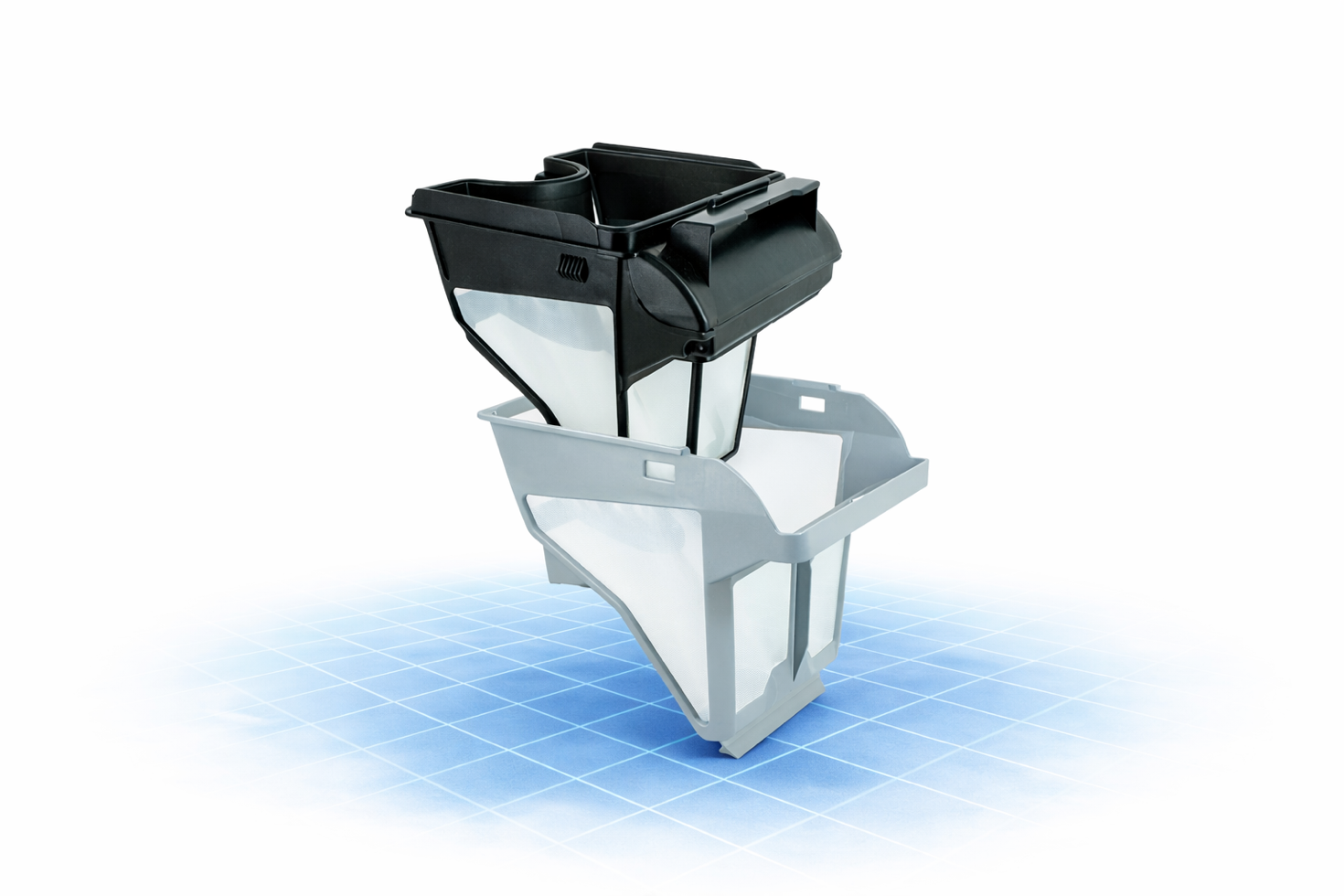 Pokročilou filtrační schopnost zajišťuje také „duální filtrace“, tedy spojení dvou filtračních košů (150 μ / 60 μ – součást balení)